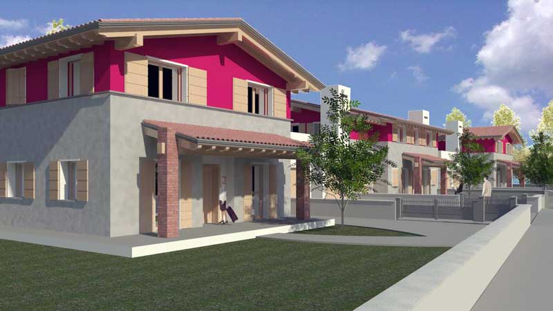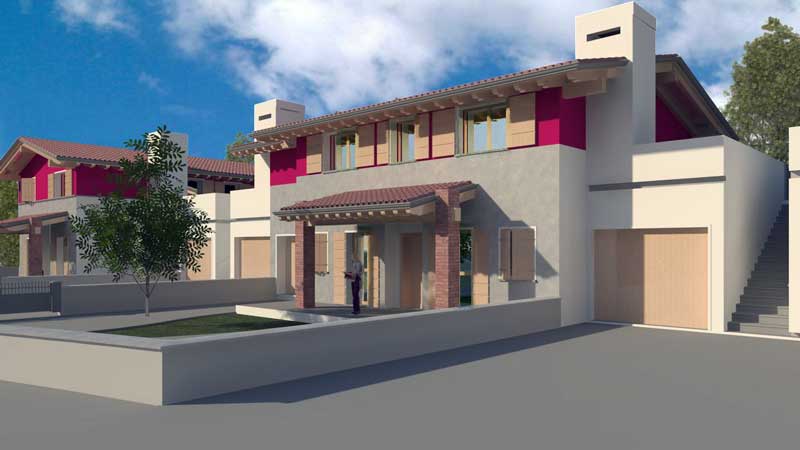 Intervento di costruzione fabbricato plurifamiliare a sette alloggi composto da tre appartamenti tricamera e bicamera al piano terra con ampio giardino ad uso esclusivo e quattro appartamenti tricamera e mini al piano primo con ampi terrazzi.